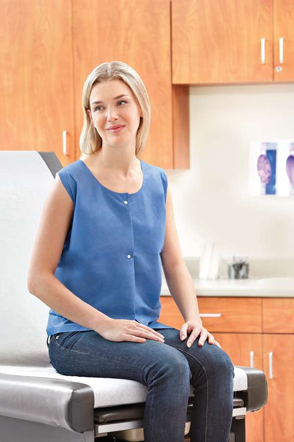 Exam Vest with Snaps, 31″ x 24″, Blue Front/ White Back, 75/cs (80 cs/plt) (090951) (218) (Part Number is having a ROLLING TRANSITION from a 3 digit to a 7 digit number – You may receive either part number until transition is completed)