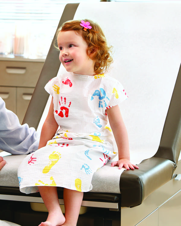 Made from gentle fabric-like tissue and a durable poly layer which is tear and moisture resistant. Front/back opening.