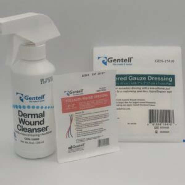 GSE has bundled 30day wound care kits that can be provided to your patients to apply at home.2 x 2 Collagen Wound Dressing (30), 4 x 4 Bordered Gauze (30), 8oz Dermal Wound Cleanser Spray Bottle (1)